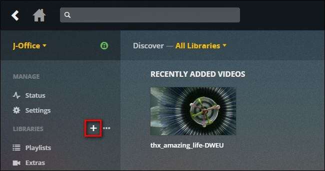 Melden Sie sich dazu im Web-Dashboard Ihres Plex Media Servers an und klicken Sie auf das Symbol + neben dem Eintrag „Libraries“ in der linken Navigationsspalte.