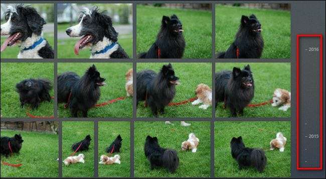 Plex Premium-Benutzer können auf den Schalter in der oberen rechten Ecke des Anzeigebereichs der Fotobibliothek klicken, um zur Ansicht „Zeitleiste“ zu wechseln, in der alle Fotos nach Datum in Gruppen angeordnet werden (unabhängig davon, in welchen Verzeichnissen sie sich befinden).