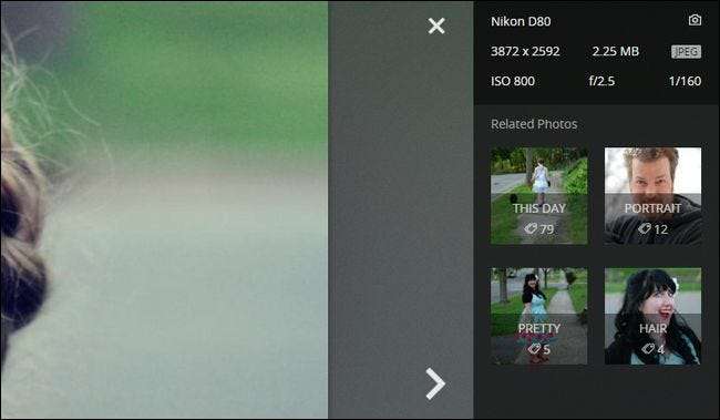 Sie können jetzt mit Ihren Fotos interagieren, ähnlich wie Sie mit anderen Medien auf Ihrem Plex Media Server interagieren würden. Wählen Sie Fotos für eine genauere Ansicht aus, in der Sie nicht nur das Foto im Vollbildmodus sehen können, sondern auch zusätzliche Informationen zum Foto, einschließlich Metadaten (wie Dateigröße, Verschlusszeit und Kameramodell), aber für Plex Premium-Benutzer: auch die Tags, die automatisch auf den Fotos signiert sind (auf die Sie dann klicken können, um andere Fotos basierend auf diesen Kategorien zu durchsuchen).