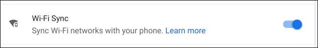 Wählen Sie die Schaltfläche "Einschalten" oben auf dem Bildschirm aus. Jetzt können Sie die Switches für alles umschalten, was Sie synchronisieren möchten, zwischen Chromebooks. Der einzige, den Sie für Wi-Fi Sync aktiviert haben, sind "Wi-Fi-Netzwerke".