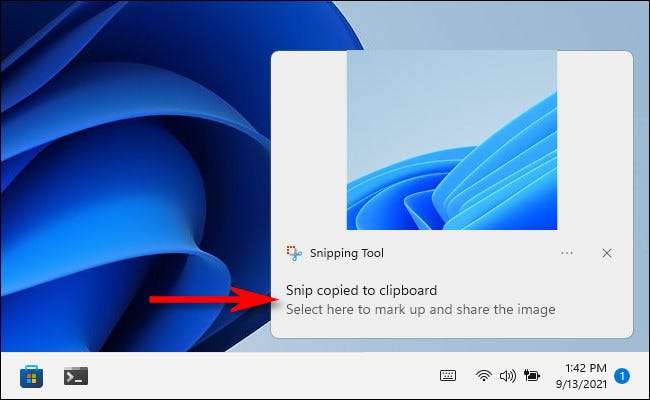 Wenn Sie Ihre Maustaste loslassen, werden der ausgewählte Bereich in die Zwischenablage kopiert. Wenn Sie Benachrichtigungen eingeschaltet haben, werden Sie in der Ecke des Bildschirms ein kleines Popup in der Ecke des Bildschirms angezeigt. Wenn Sie darauf klicken, öffnet der Screenshot, den Sie gerade aufgenommen haben, in der Creming Tool-App, in der Sie können Annotieren, Ernte oder Speichern wie nötig (siehe Abschnitt unten).
