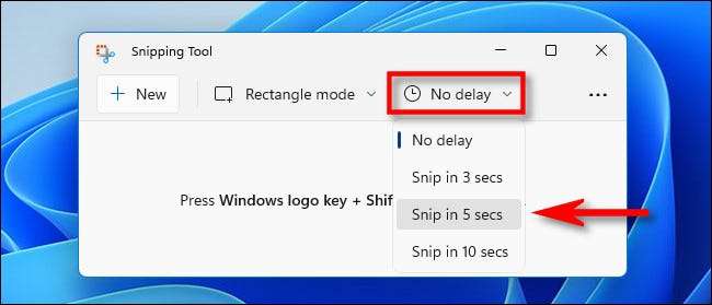 Wenn Sie auch etwas mit einer zeitgesteuerten Verzögerung erfassen müssen, ist das schnippende Werkzeug ideal. Klicken Sie in der Symbolleiste auf das Uhrensymbol und wählen Sie eine Verzögerungszeit im Dropdown-Menü aus, das angezeigt wird.