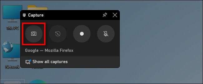 Klicken Sie im Fenster "Capture" (der standardmäßig in der oberen linken Ecke des Bildschirms angezeigt wird) klicken Sie auf das Kamerasymbol, um einen Screenshot der aktuellen App (oder des Desktops, wenn keine App aktiv ist).