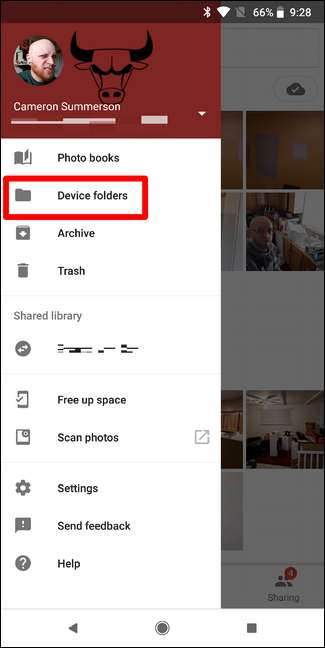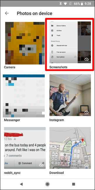 Sie können auch auf alle Ihre Screenshots in der Fotos-App zugreifen. Wischen Sie von links nach innen, um das Menü anzuzeigen, und wählen Sie dann die Option „Geräteordner“.