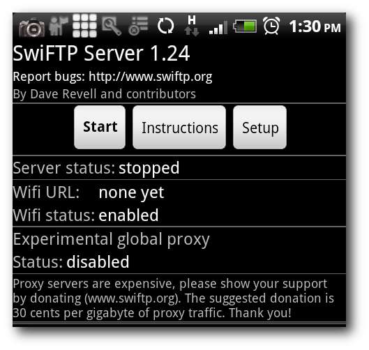 Sie sollten eine IP-Adresse sehen, wenn Sie swiFTP ausführen. Notieren Sie sich die IP-Adresse und den Port. Sie benötigen diese Informationen, um eine FTP-Verbindung zu Ihrem Android herzustellen.