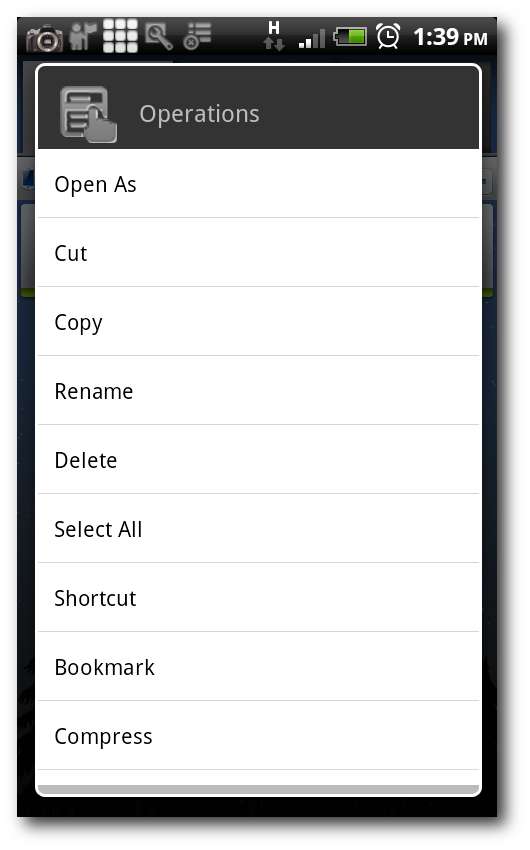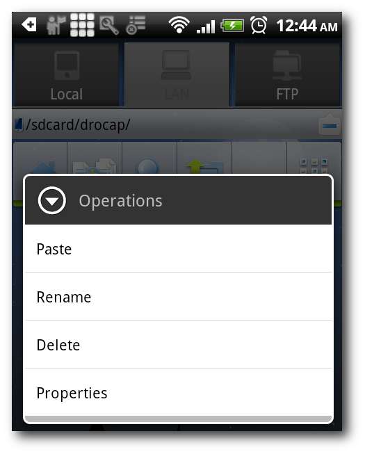 Tippen Sie auf Vorgang, dann auf Einfügen, und der ES-Datei-Explorer lädt alle diese Dateien auf Ihren Computer hoch.