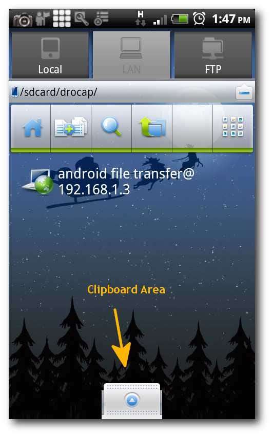 Kehren Sie zur Registerkarte LAN zurück, tippen Sie auf die Zwischenablage, und Sie sollten alle Dateien sehen, die Sie gerade kopiert haben.