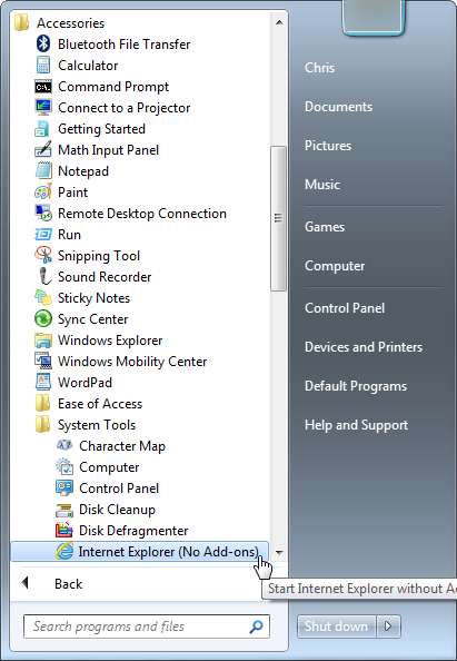 Führen Sie den Internet Explorer ohne Add-Ons aus