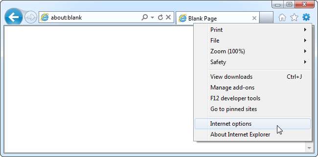 Sie können die Internet Explorer-Browsereinstellungen auf die Standardeinstellungen zurücksetzen, um eine Vielzahl von Browserproblemen zu lösen. Öffnen Sie zunächst das Fenster Internetoptionen im Zahnradmenü.