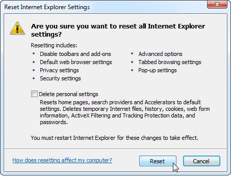 Setzen Sie die Internet Explorer-Einstellungen zurück
