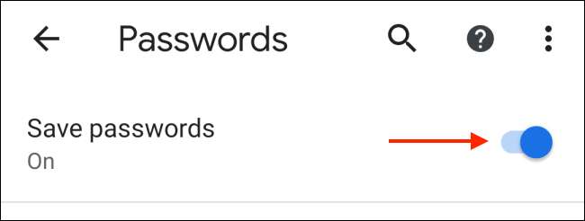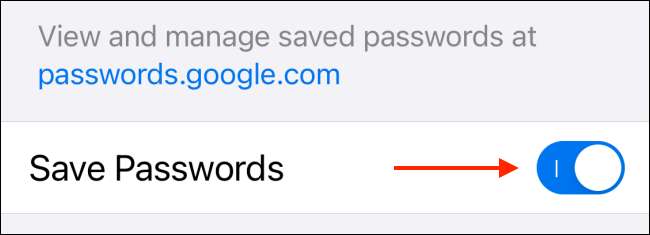 Tippen Sie neben der Option "Passwörter speichern" auf den Umschalten auf TOGGLE.