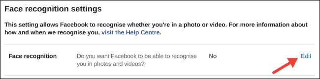 Wählen Sie den blauen Link "Bearbeiten", befindet sich rechts neben der Option "Face Recognition".
