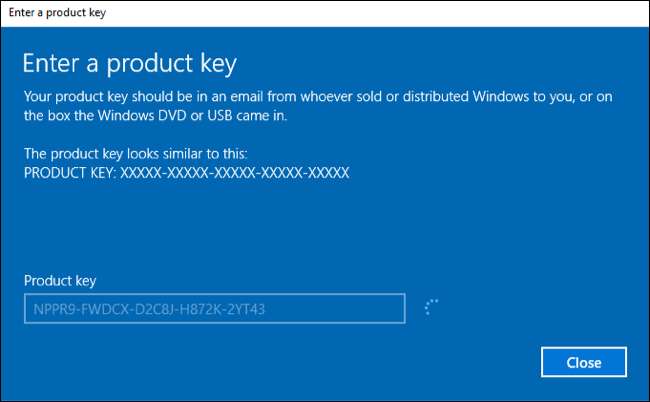Dies funktioniert sogar noch besser, wenn Sie über ein Unternehmen einen legitimen Windows 10 Enterprise-Produktschlüssel verfügen. Geben Sie einen legitimen Produktschlüssel ein, und Windows 10 wird auf die Enterprise Edition aktualisiert und ordnungsgemäß aktiviert. Dies ist eine praktische Lösung für Unternehmen, die Computer mit Home- oder Professional-Editionen von Windows 10 erwerben und ohne Neuinstallation aktualisieren können.