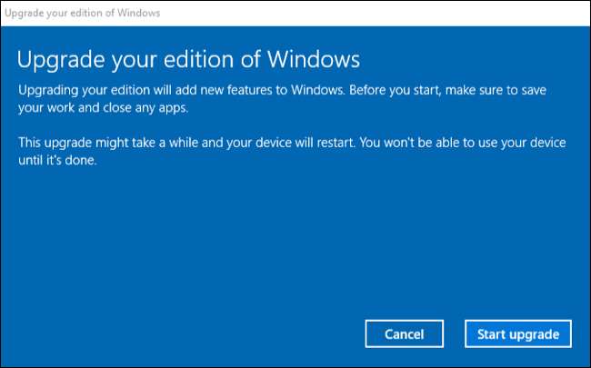 Nach einem Moment bietet Windows 10 an, "Ihre Windows-Edition zu aktualisieren". Speichern Sie unbedingt Ihre geöffneten Dateien und schließen Sie Anwendungen, bevor Sie fortfahren, da Ihr Computer während dieses Vorgangs neu gestartet wird.