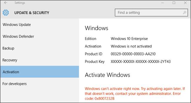 Wenn Sie jedoch einen KMS-Schlüssel verwendet haben, wird Ihr System nicht mehr aktiviert und Windows 10 informiert Sie darüber. Dies ist ein guter Kompromiss, wenn Sie diese Funktionen in einer virtuellen Maschine oder auf einem sekundären PC ausprobieren können, auf Ihrem primären PC jedoch möglicherweise nicht.