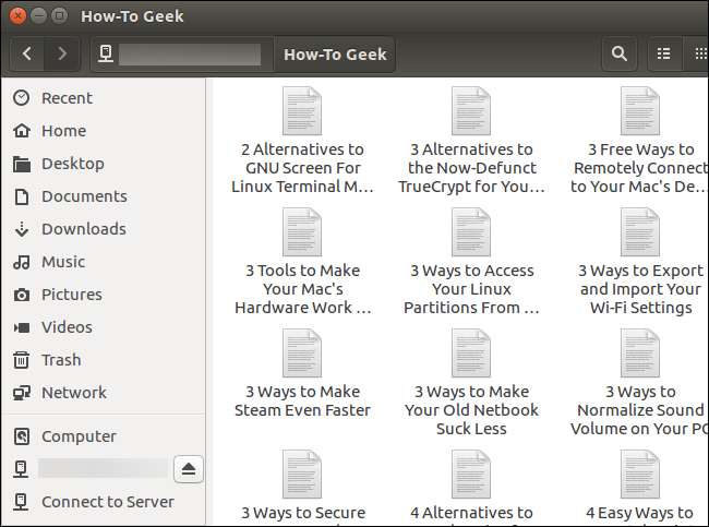 Öffnen Sie den Dateimanager und Sie sehen die E-Mail-Adresse Ihres Google-Kontos als Option unter "Computer" in der Seitenleiste. Klicken Sie darauf, um Ihre Google Drive-Dateien anzuzeigen.