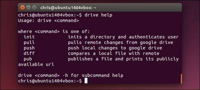 Aus diesen philosophischen Gründen befindet sich "Laufwerk" nicht im Hintergrund und synchronisiert Dateien hin und her. Dies ist ein Befehl, den Sie ausführen, wenn Sie eine Datei in Ihr Google Drive-Konto übertragen oder eine Datei von dort auf Ihren lokalen Computer ziehen müssen. Mit dem Befehl "Drive Push" wird eine Datei an Google Drive gesendet, und mit dem Befehl "Drive Pull" wird eine Datei aus Google Drive abgerufen. Der Entwickler stellt Situationen fest, in denen dies besonders nützlich sein kann - wenn Sie a speichern virtuelle Maschine In Ihrem Google Drive möchten Sie möglicherweise sofort eine winzige Textdatei synchronisieren, anstatt zuerst die große Datei der virtuellen Maschine zu synchronisieren.