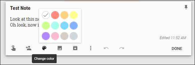 Um die Farbe einer Notiz im Web zu ändern, öffnen Sie die Notiz und klicken Sie unten auf das Gaumensymbol.