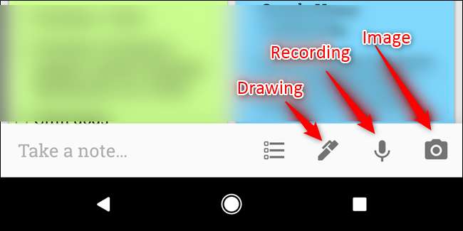 Um eines dieser Dinge in einer neuen Notiz zu tun, verwenden Sie die Schaltflächen in der unteren Leiste (im Web ist die Option „Zeichnen“ hinter der Schaltfläche „Mehr“ versteckt):