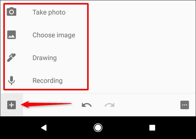 Um einer vorhandenen Notiz eines dieser Dinge hinzuzufügen, tippen Sie unten auf die Schaltfläche „+“ und wählen Sie dann den entsprechenden Eintrag aus.