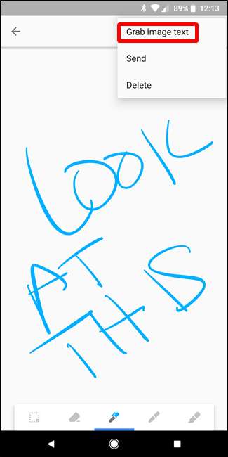 Wenn Sie Text mit der Funktion „Zeichnen“ notieren, können Sie Keep auch bitten, ihn zu transkribieren, indem Sie die obere Menüschaltfläche verwenden und dann die Option „Bildtext erfassen“ auswählen.