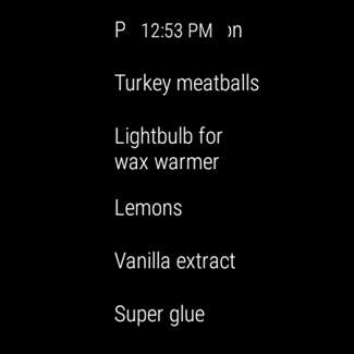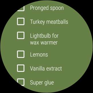 Dies ist eine großartige Möglichkeit, eine Liste im Auge zu behalten, wenn Sie beispielsweise Lebensmittel einkaufen. Sie können sich die Liste ansehen und die Dinge abhaken, während Sie gehen. Es funktioniert sogar im Umgebungsmodus, sodass Sie den Akku Ihrer Uhr nicht entladen, während die Liste leicht zugänglich bleibt.