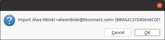 Der Name des Absenders und deren E-Mail-Adresse erscheint als Bestätigung. Klicken Sie auf "OK", um den Schlüssel zu importieren.