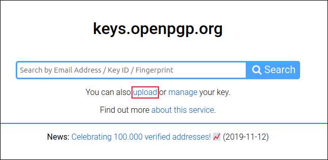 Speichern Sie die exportierte Datei auf Ihrem Computer (stellen Sie sicher, wo Sie ihn speichern). Öffnen Sie Nächstes Ihren Webbrowser und navigieren Sie zum OpenPGP-Schlüssel-Repository. . Hier können Sie mit der E-Mail-Adresse, der Schlüssel-ID oder den Fingerabdruck nach vorhandenen Tasten suchen.