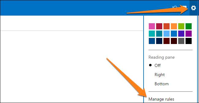 Wenn Sie in Ihrem Outlook.com-E-Mail-Konto angemeldet sind, klicken Sie auf die Schaltfläche "Einstellungen" und dann auf die Option "Regeln verwalten", um eine neue Regel zu erstellen.