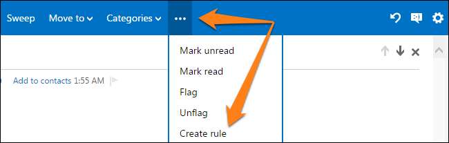 Alternativ können Sie auf die E-Mail klicken, um sie zu öffnen und eine Regel zu erstellen, indem Sie die Option aus dem erweiterten Menü auswählen.