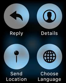 Sie können eine Sprache auswählen, obwohl für uns derzeit nur Englisch verfügbar ist. Anstatt zu versuchen, jemandem zu beschreiben, wo Sie sich befinden, können Sie dies auch Senden Sie Ihren Standort für sie, damit sie genau wissen, wo Sie sind. Durch Tippen auf „Antworten“ kehren Sie einfach zum Konversationsbildschirm zurück (siehe Abbildung oben), sodass Sie eine Methode zum Senden Ihrer Antwort auswählen können.
