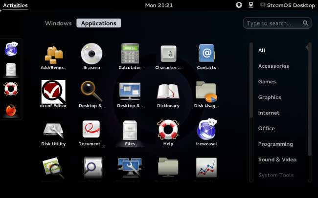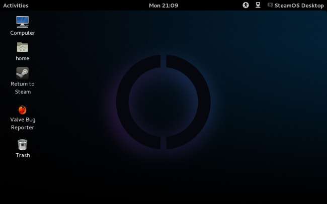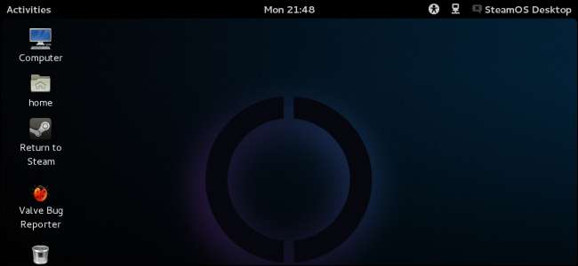 Der Desktop unter der übersichtlichen Steam-Oberfläche ist ein Standard-GNOME-Desktop gebaut auf Debian Linux . Wenn Sie zuvor Linux verwendet haben, sollte es sehr vertraut aussehen.