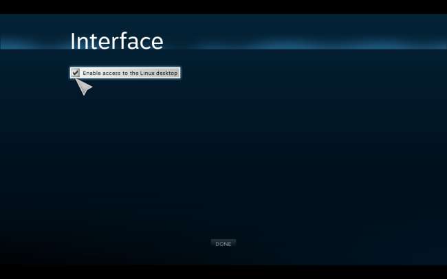 Wählen Sie den Bildschirm Schnittstelle und klicken Sie auf die Option Zugriff auf den Linux-Desktop aktivieren.