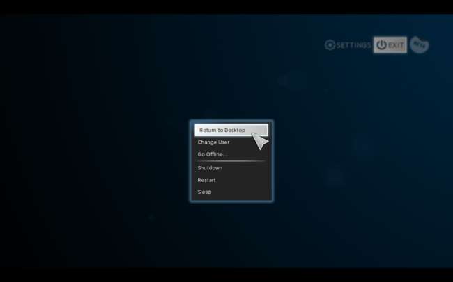 Sie können jetzt auf Beenden klicken und Zurück zum Desktop auswählen. Die Steam-Oberfläche wird geschlossen und zeigt Ihnen einen Linux-Desktop.
