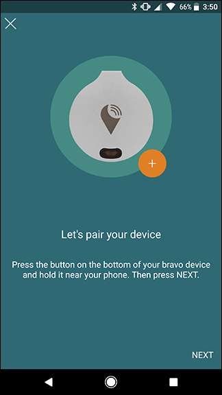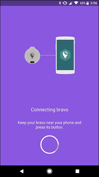 Als nächstes werden Sie von der App aufgefordert, die Taste auf der Vorderseite Ihres Trackr zu drücken. Klicken Sie darauf, um den Pairing-Vorgang zu starten.