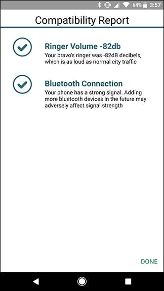 Nach beiden Tests wird ein "Kompatibilitätsbericht" angezeigt. Natürlich würden Sie davon ausgehen, dass das Trackr-Gerät gut funktioniert und kompatibel ist, aber es ist praktisch, ein paar Tests durchzuführen, um Ihnen zu zeigen, wie es funktioniert, und um sicherzustellen, dass Ihr Gerät ordnungsgemäß funktioniert. Tippen Sie auf Fertig, um fortzufahren.