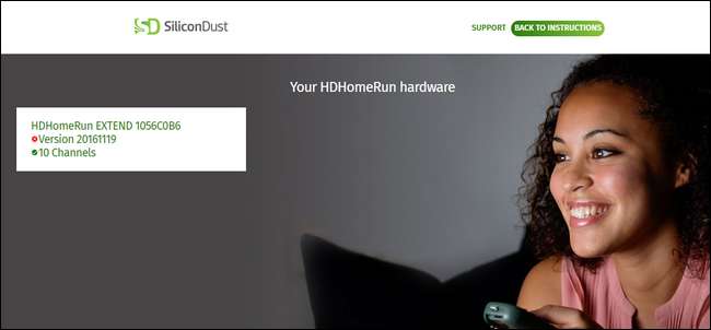 Wenn Sie einen idealen Platz für die HomeRun-Box gefunden haben, schließen Sie das Koaxialkabel, das Ethernet-Kabel und die Stromversorgung an. Bevor Sie jedoch mit dem Tuner herumspielen, aktualisieren Sie die Firmware, damit Sie die reibungsloseste Erfahrung genießen können. Navigieren Sie dazu zu my.hdhomerun.com von einem Webbrowser auf einem Computer, der mit Ihrem lokalen Netzwerk verbunden ist. Sie sehen eine Nachricht wie die folgende:
