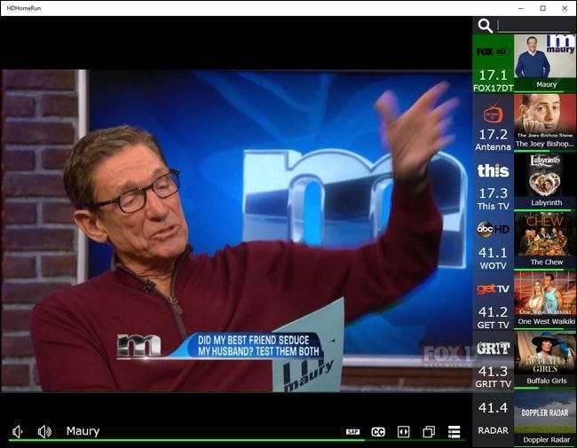 Wenn alles nach Plan verlaufen ist, greift die HDHomeRun-Anwendung sofort auf die lokalen Kanäle zu, zeigt den ersten Kanal im Vollbildmodus an und lässt Sie dabei wahrscheinlich fragen, warum Sie überhaupt Live-TV schauen wollten. Wussten Sie, dass Maury noch im Fernsehen war? Wir auch nicht.