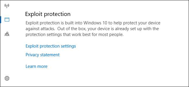 Microsoft’s Herbst Creators Update Endlich wird Windows ein integrierter Exploit-Schutz hinzugefügt. Sie mussten dies zuvor in Form des EMET-Tools von Microsoft suchen. Es ist jetzt Teil von Windows Defender und standardmäßig aktiviert.