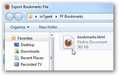 Wählen Sie dann einen geeigneten Speicherort für die Lesezeichendatei.