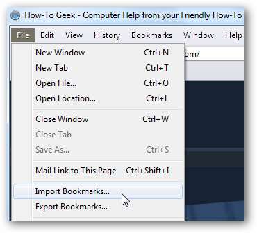 Klicken Sie dann auf Datei \ Lesezeichen importieren.