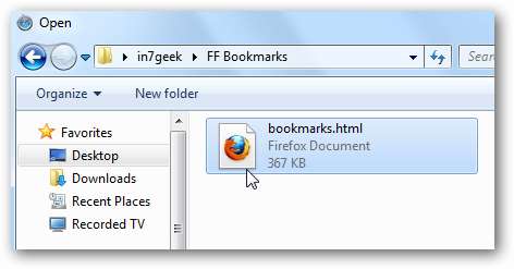 Navigieren Sie nun zu dem Speicherort, an dem Sie Ihre HTML-Datei mit Firefox-Lesezeichen gesichert haben.