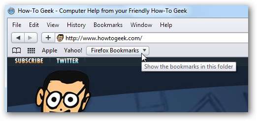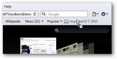 Hier haben wir einige der Standard-Lesezeichen in der Leiste entfernt und haben jetzt einfachen Zugriff auf unsere aus Firefox importierten Lesezeichen.