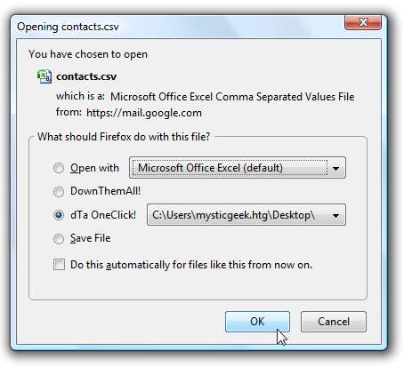 Der Explorer wird geöffnet, damit Sie zu dem Verzeichnis navigieren können, in dem sich die gespeicherte Google Mail-Kontaktdatei befindet. Sie müssen wahrscheinlich Alle Dateien auswählen und dann auf die CSV-Datei doppelklicken.