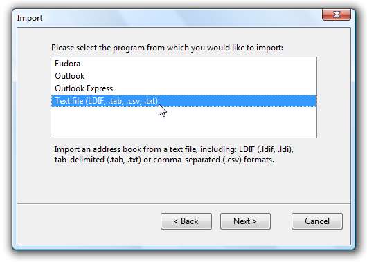 Wählen Sie Textdatei (LDIF, .tab, .csv, .txt) und klicken Sie auf Weiter.
