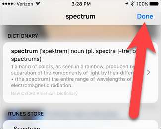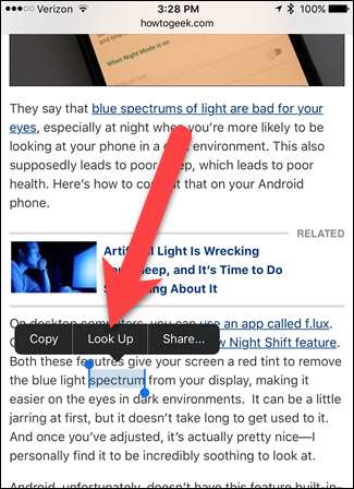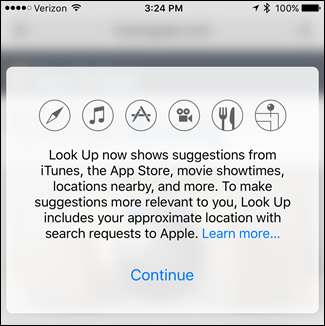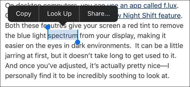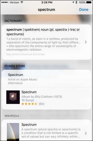 Die erweiterte Suchfunktion entspricht im Wesentlichen den webbasierten Ergebnissen in Spotlight Search und Siri Suggestions. Jetzt haben Sie diese Ergebnisse in fast jeder App, die die Auswahl von Text unterstützt.