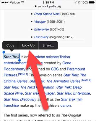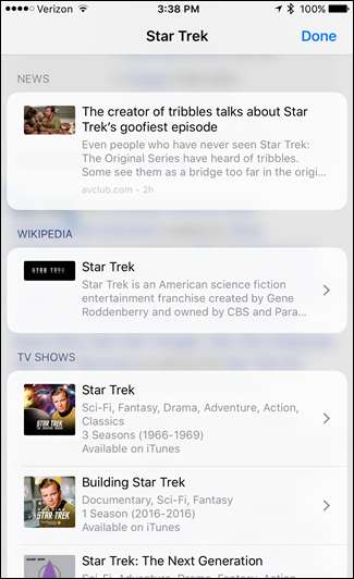 Ein anderes Beispiel ist die Auswahl von "Star Trek" und das Tippen auf "Nachschlagen".