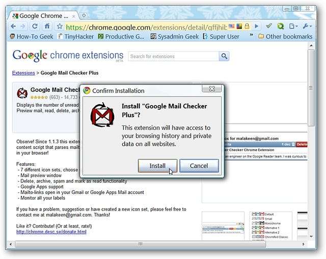 Wenn das Bestätigungsfenster angezeigt wird, müssen Sie auf "Installieren" klicken, um das Hinzufügen der Erweiterung zu Chrome abzuschließen.