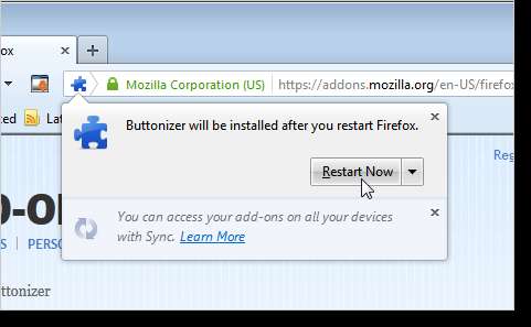 Nach der Installation des Add-Ons wird ein Popup-Fenster angezeigt, in dem Sie aufgefordert werden, Firefox neu zu starten, um die Installation abzuschließen. Klicken Sie auf Jetzt neu starten.
