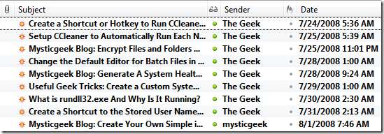 Vor einiger Zeit schrieb ich einen Artikel über die Verwendung Outlook 2007 als RSS-Reader . In meiner neuen Position verwende ich Thunderbird tatsächlich als meinen E-Mail-Client und wollte RSS-Feeds damit abonnieren, anstatt eine separate App wie zu verwenden RSS Eule oder Google Reader. Nicht, dass irgendetwas an diesen Entscheidungen falsch ist, aber je mehr alles konsolidiert werden kann, desto besser.